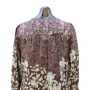 Johnny Was Purple & Mint Silk Floral Print Boho Dress w/Tie Neck Size S