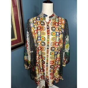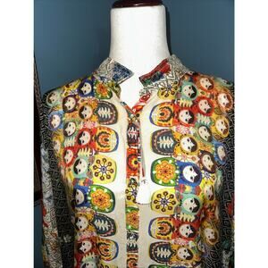 Johnny Was RARE Babette Russian Nesting Dolls 100% Silk Top/tunic Size 2XL