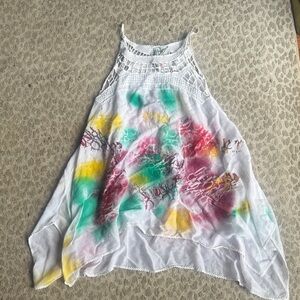 Johnny Was RARE Painted Crochet Trimmed Handkerchief Tank Tunic, size Small