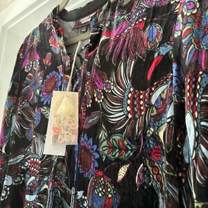 Johnny Was Rayon Silk Vibrant Floral Tie Front Kimono Dress NWT Size Small
