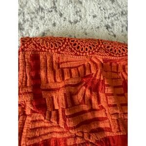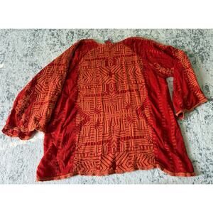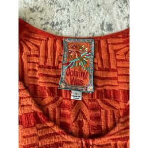 Johnny Was Red Orange Embroidered Peasant Blouse Size Large