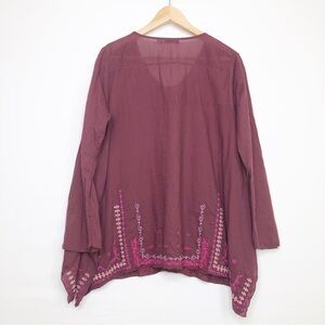 Johnny Was Red Wish Stitch boho embroidered long sleeve tunic top