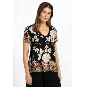 Johnny Was Redland Favorite Short Sleeve V Neck Swing Tee Special Shirt Black NW