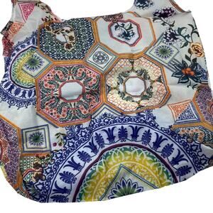 Johnny Was Reusable Shopper Tote Bag Foldable Geometric Floral Blue