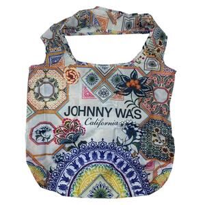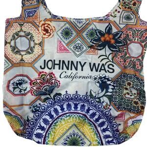 NEW Johnny Was Reusable Shopper Tote Bag Foldable Geometric Floral Blue