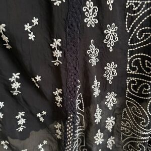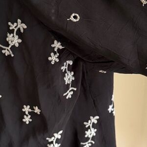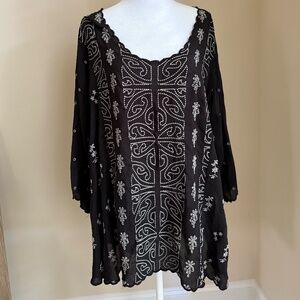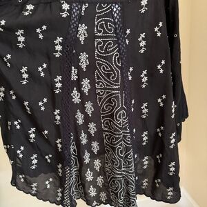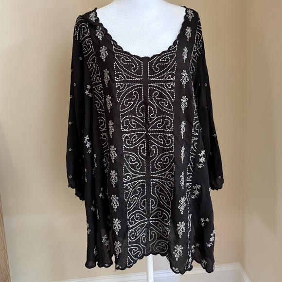 Johnny Was beautiful eyelet embroidered blouse with scalloped edges at the neck, hem, and sleeves. Beautiful lace detailing at back.