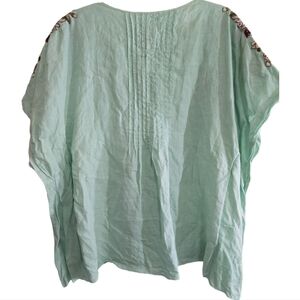 Johnny Was Rosalie Linen Pintuck Poncho Top Cool Mint Green Embroidered Large