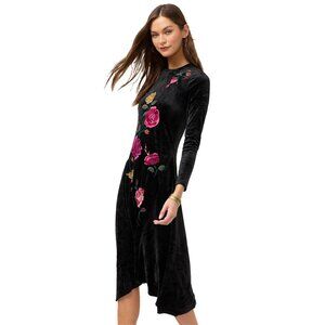 Johnny Was Rosilia Handkerchief Hem Velour Dress Long Floral Embroidery Black NEW