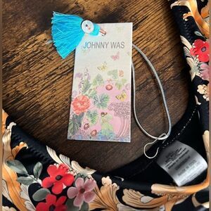 Johnny Was Rouched Bikini Top in Black Royal Floral Print. Removable pads included. Size Small. Brand new and never worn. New with tag.
