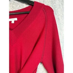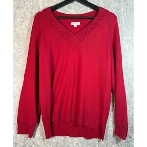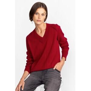 Johnny Was Sally Red Cashmere Whipstitch Pullover V-Neck Sweater - XL