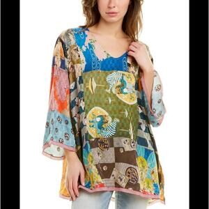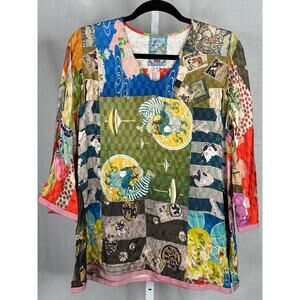 The Samantha blouse with it's beautiful asian patchwork print, oversize style with a soft satin feel will have you feeling comfy and stylish for any adventure.