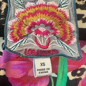Johnny Was Sandra Multicolor Butterflies Floral Tiered V-Neck Dress 3/4 Sleeve