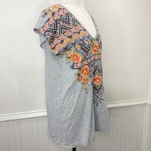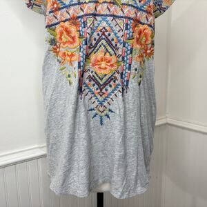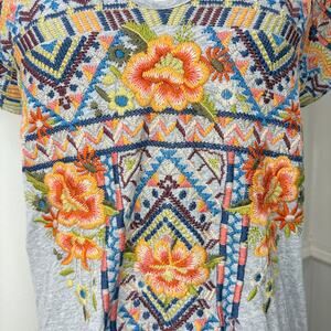 Johnny Was Sentrie Size S Tunic Top Relaxed Deep Scoop T-Shirt Embroidered Boho