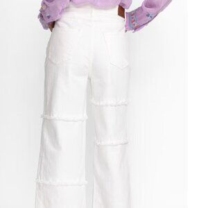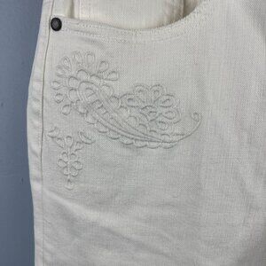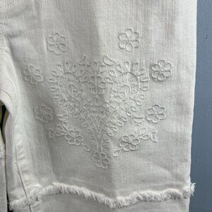 Johnny Was Sevilla Cropped Wide Leg Jean White Cotton Blend Denim Size 26 Embroidered Frayed Hems