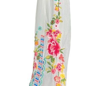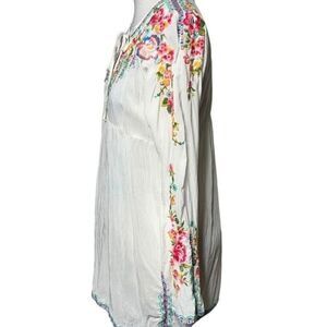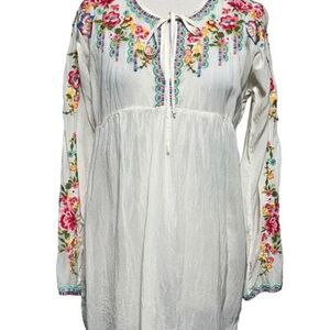 Johnny Was Sheer Floral Embroidered Boho Long Sleeve Tunic Blouse Small