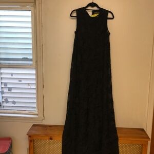 Black label NWT Size medium length approximately 63 Pit to Pit appro. 20 Missing the slip underneath beautiful black floral sheer Jaquard gown/maxi dress any questions just ask