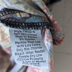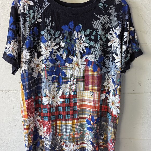 Johnny Was Shirt Plaid Navy Blue Ona Raglan Floral Tee Top Bamboo Red