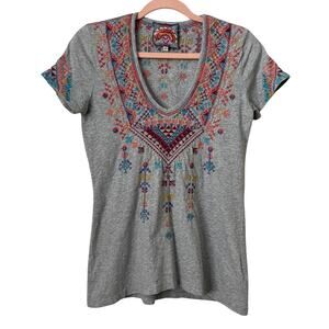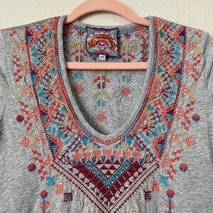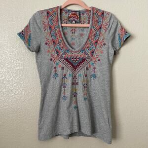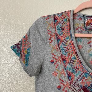 Gray Embroidered Short Sleeve Tee Cotton Shirt Johnny Was XS