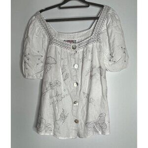 Johnny Was Short Sleeve Embroidered Square Neck Sovanna Wander Top White Gray S