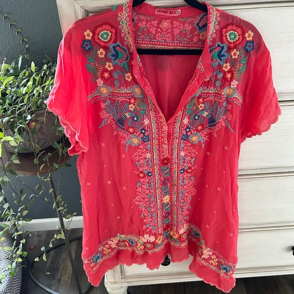 Johnny Was Short Sleeve Tunic Silk and Embroidery XL