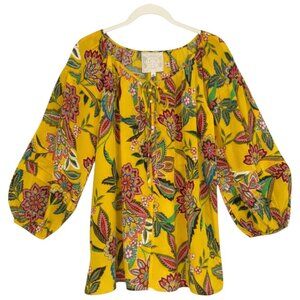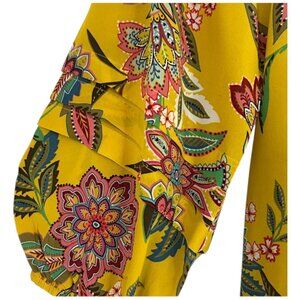 Johnny Was Silk Anka Floral Paisley Peasant Blouse Yellow Multi Boho S