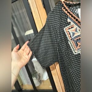 Johnny Was Silk Biya mini dress embroidered flowers floral ruffles short sleeve