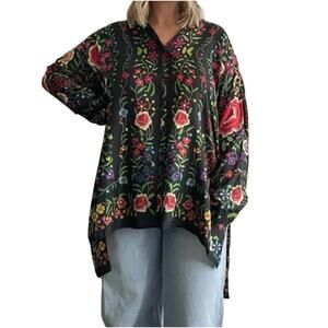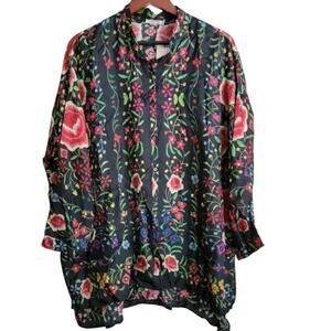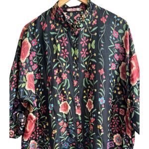 Johnny Was Silk Floral Lightweight Button Up Blouse Emby Top Boho Indie Flowy