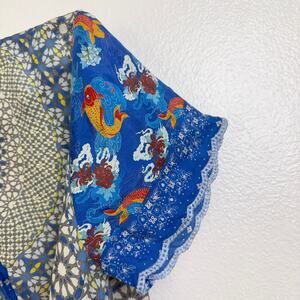 Johnny Was Silk Tunic Top Womens Small Blue Koi Fish Floral Button Up Art