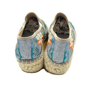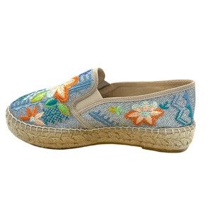 Johnny Was Silver Metallic Floral Embroidered Elysia Espadrilles Size 41
