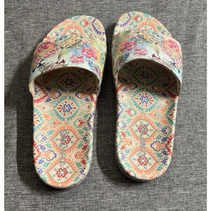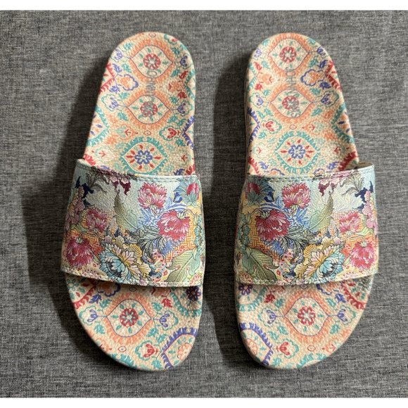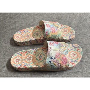 Johnny Was Size 10M Pearce Wave Pool Slide Sandals Colorful Pink Floral Pattern