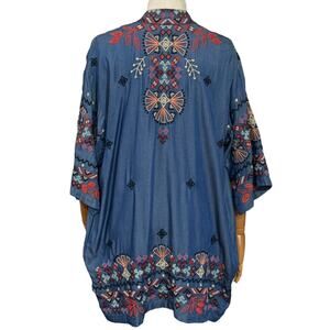 Johnny Was Size S Mareen Embroidered Kimono Jacket Blue Open Front Boho Western