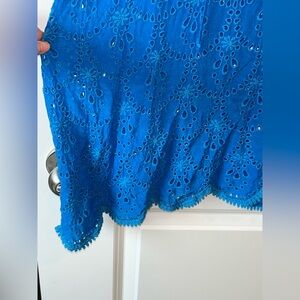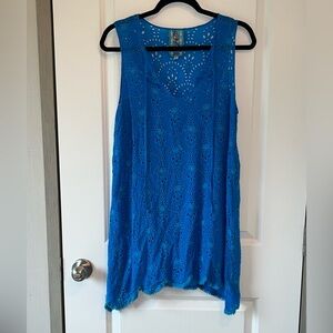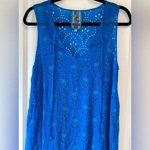 Johnny Was Sleeveless Blue Cupra Rayon Eyelet Blouse Tunic Top Medium