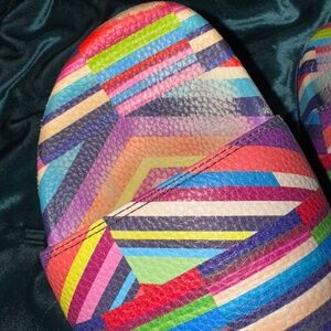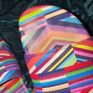 Johnny Was Slide Pool Sandal Multi Color Rainbow Stripe Size 8 - there are some signs of wear, but only where your feet will cover it up! Otherwise they look awesome! There is still so much life left in this gorgeous slides. Whenever I wore them, everyone wanted to know where I got them and what kind they were. So many compliments!