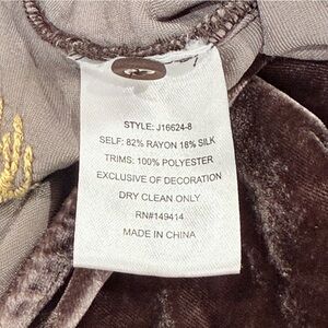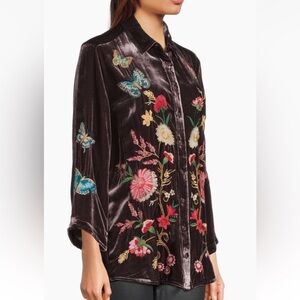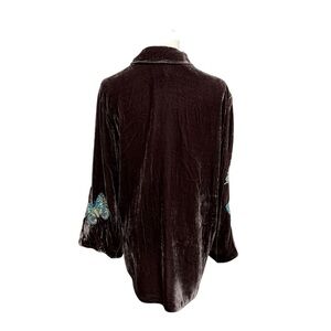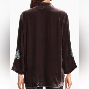 Johnny Was Floral Embroidered Velvet Kimono Sleeve Blouse Small Coffee Bean NWT
