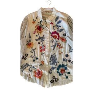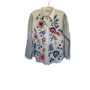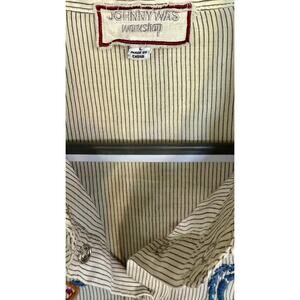 Featuring intricate embroidery on classic stripes, this piece effortlessly combines bohemian charm with sophisticated style. The vibrant colors and delicate detailing make it a standout piece for any occasion.