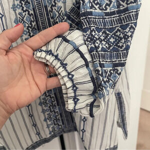 Johnny Was Striped White Cotton V Neck Blouse Tunic Top