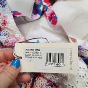 Johnny Was Summer Days Eyelet Crossback One Piece Swimsuit M Boho Beach Resort