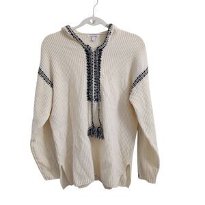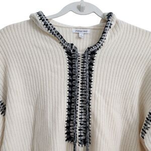 Johnny Was Sweater Small Cream Beltran Baja Rib Wool Cashmere Whipstitch Hooded