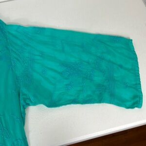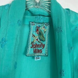 Johnny Was Sz 3X Kimono Cardigan Turqoise Eyelet Lace Embroidered