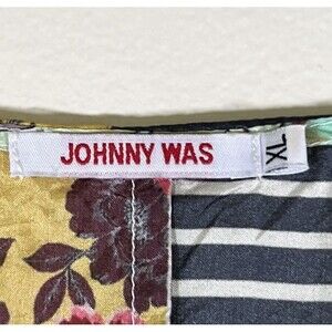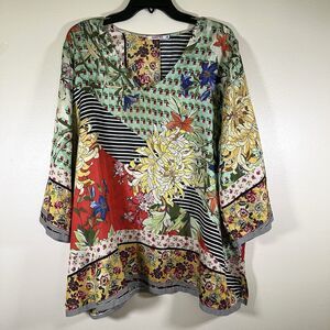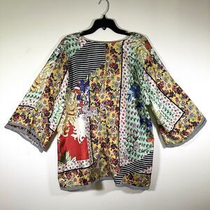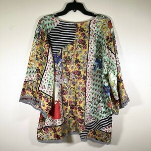 Johnny Was Sz XL Silk Patchwork Floral Boho Top Blouse Multicolor Kimono Sleeve