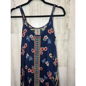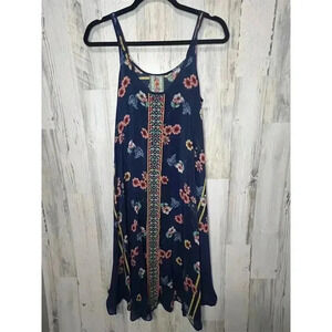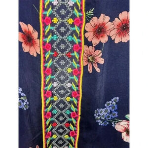 Keywords: Johnny Was, floral dress, embroidered, A-line, knee-length, sleeveless, scoop neck, summer dress, casual wear, georgette, multicolor, women's fashion, pre-owned, machine washable, China.