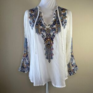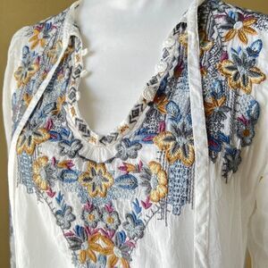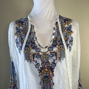 Johnny Was Tanya Tonal White Blouse Women's Sm C14318-5 Embroidered Boho Top
