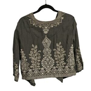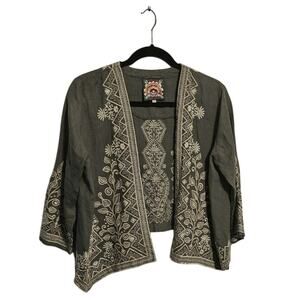 Johnny Was Tasya Bolero Jacket – Size Small – Gray Linen with Embroidery