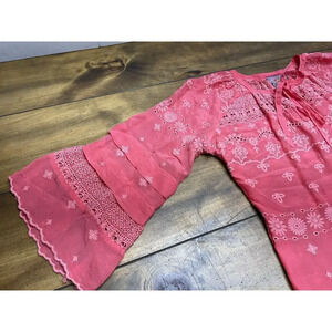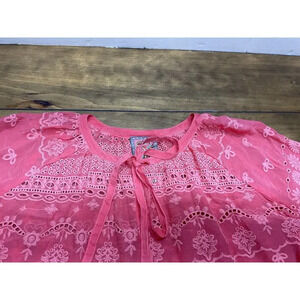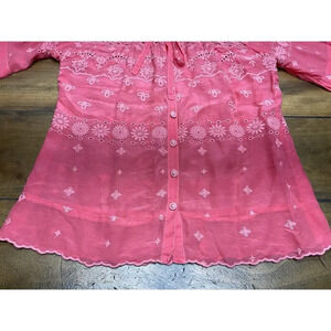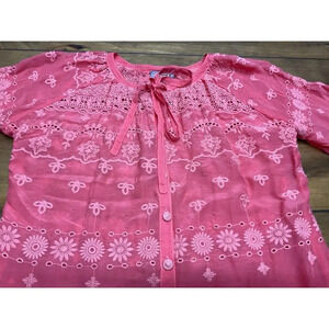 Johnny Was Tay Eylet Floral Embroidered Button Up Top Passionfruit Size XS