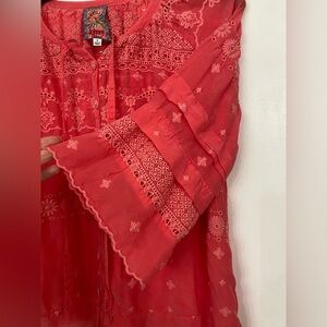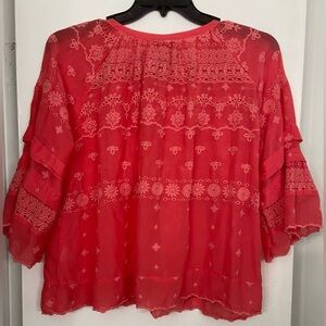 Johnny Was Tay Tie Front Embroidered Eyelet Top Pink Size Small.