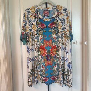 Beautiful Johnny Was Tee. Barely worn as I have lost a lot of weight and I am selling a lot of my barely or never worn clothes. These JW tees are made of a super soft fabric that drapes beautifully and the colors are just beautiful. Good with jeans or shorts. There is a lot you can do with these.