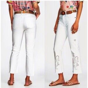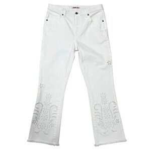 Johnny Was The Cropped Baby Boot Jeans Eyelet Pashmina White Boho Women's Size 28