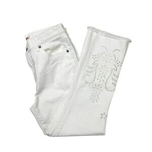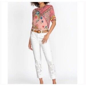 Johnny Was The Cropped Baby Boot Jeans Eyelet Pashmina White Boho Women's 28