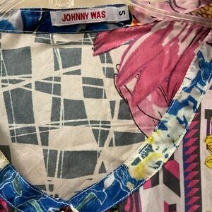 Johnny Was Theda Tunic 100% Silk Blouse Pom Pom Floral Print Size Small
