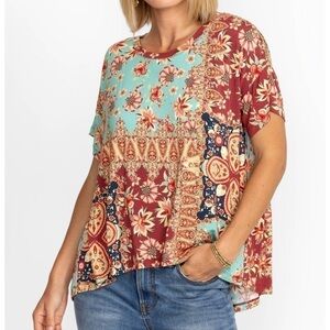 Johnny Was Thena Box Pleat Swing Tee Multi Color Size L